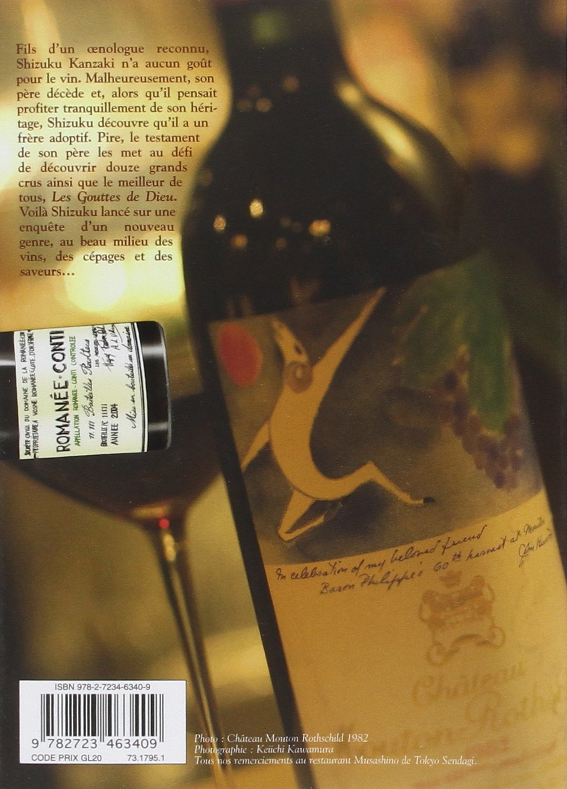 CLorsque le prestigieux œnologue Yutaka Kanzaki décède, son testament est clair : son extraordinaire cave reviendra à celui de ses deux fils qui résoudra 12 énigmes concernant 12 vins. Il découvrira alors un 13e et mystérieux vin, inconnu de tous, surnommé « Les Gouttes de Dieu ». Une chasse au trésor sous forme d’enquête policière va confronter les deux frères aux caractères et parcours opposés… Mystères et investigations se succèdent autour des crus les plus prestigieux, pour les deux frères ennemis qui se livrent à une véritable course-poursuite. Au travers de cet affrontement, le scénario conduit le lecteur dans une découverte de l’univers du vin, son langage, ses particularités, ses traditions.